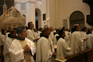 與聖佳蘭大殿的姊妹們一起晚禱。(下圖)