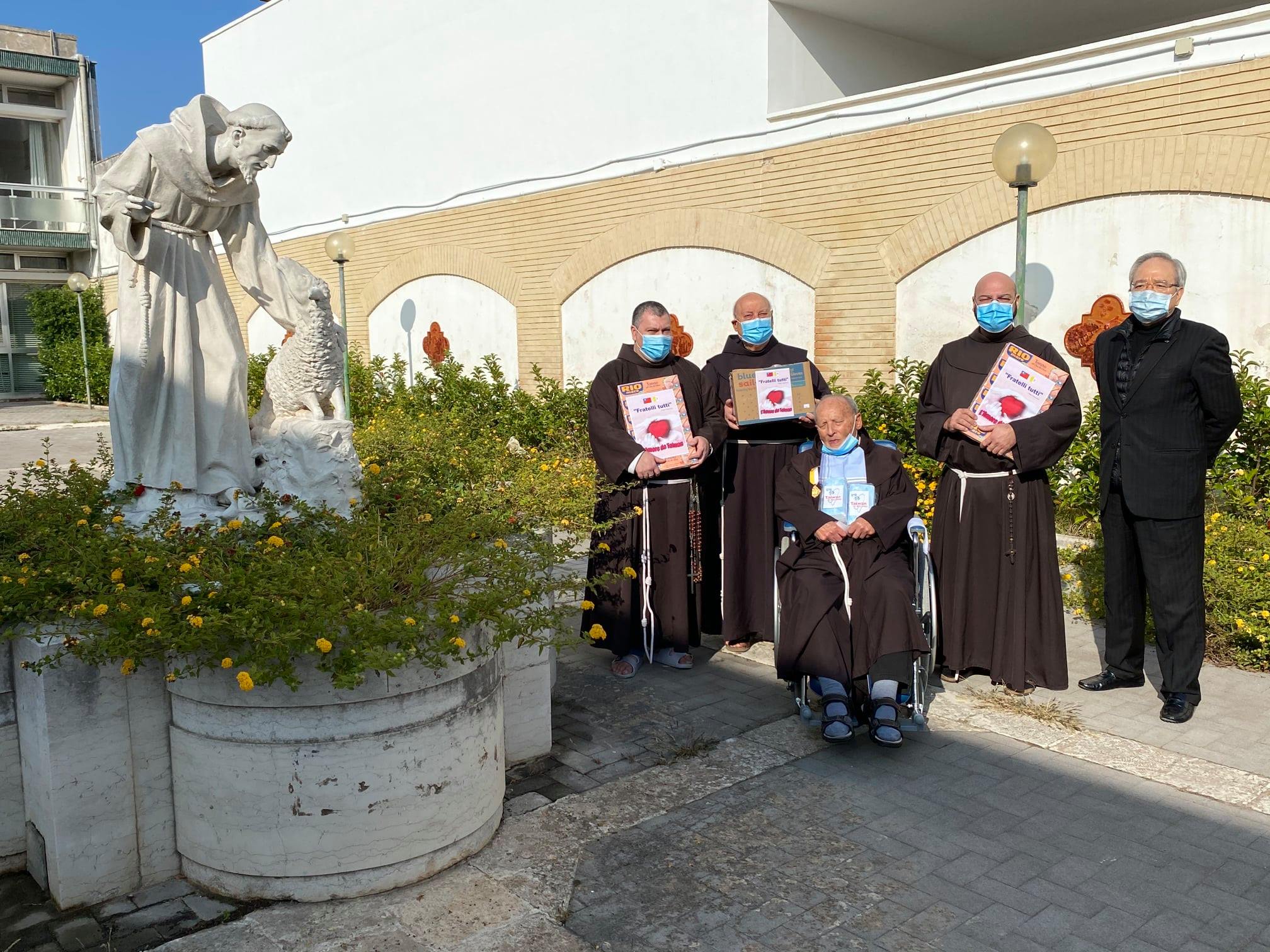 守護台灣原住民半世紀的義大利籍神父巴義慈10月31日在義大利辭世,本館李大使世明於本(109)年11月9日前往巴義慈南義故鄉萊切(Lecce),拜會當地教區與照護巴義慈晚年的方濟修會養老中心,並且代表台灣捐贈口罩等防疫物資,得知萊切還有一位曾在桃園服務36多年的神父伏迺樂(Fr. Lorenzo Fornaro),特別前往探視。