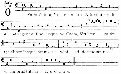 啊,智慧!啊,天主聖言!你以強力而溫柔的關懷,治理你的一切受造物;請來,給你的子民指示救恩的途徑。
