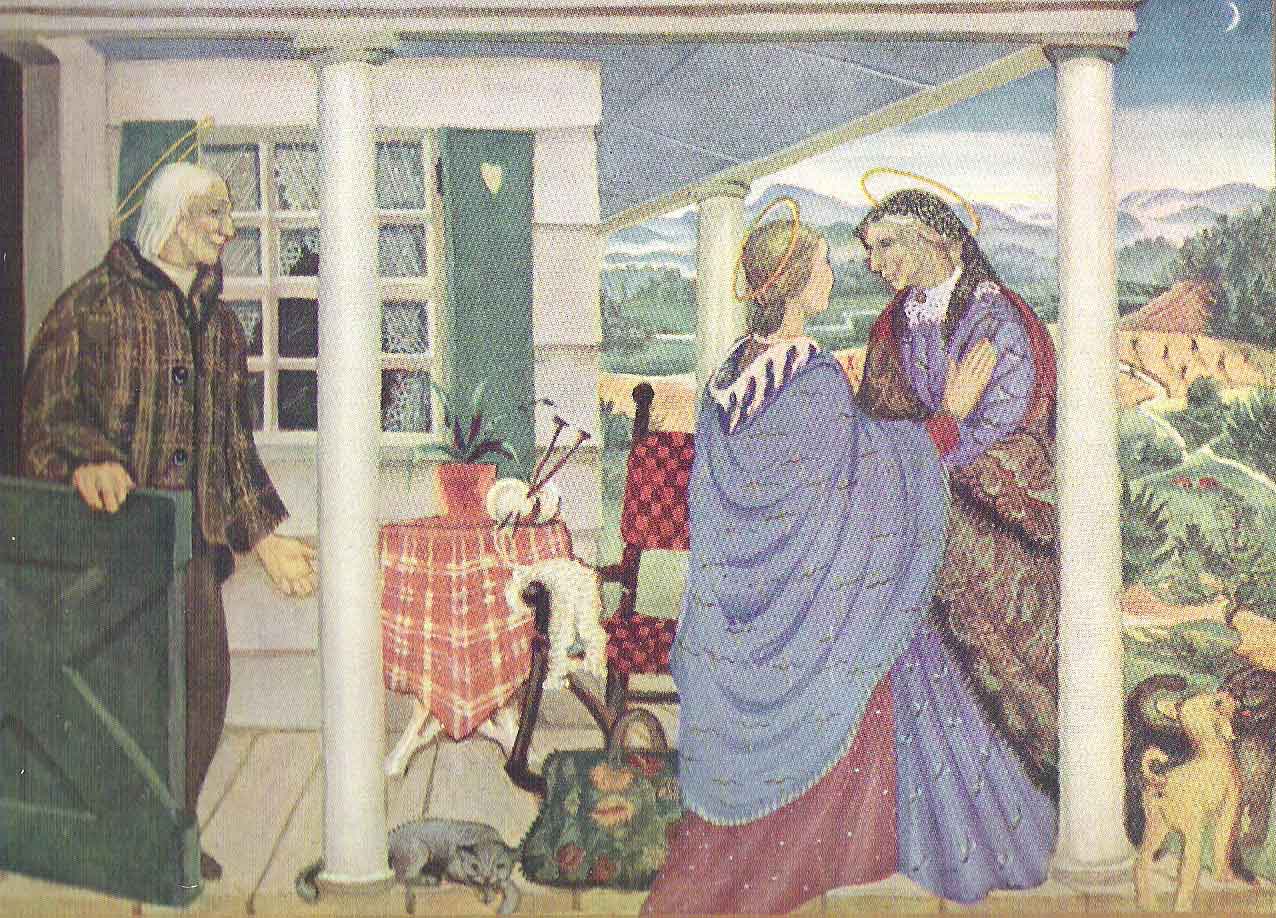 ![]() The Second Joy of Mary: The Visitation L. The infant leapt in her womb, and Elizabeth cried out in a loud voice, "Most blessed are you among women and blessed is the fruit of your womb. Luke 1:41-42 One Our Father, Ten Hail Mary's and One Glory Be. L . Eternal Father, you inspired the Virgin Mary, mother of your Son, to visit Elizabeth and assist her in her need. Keep us open to the working of your Spirit, and with Mary may we praise you forever. We ask this through Christ our Lord. R . Amen. All. Holy Virgin Mary, there is none like unto Thee born in the world among women, Daughter and Handmaid of the Most High, the Highest King, the heavenly Father, Mother of Our Most Holy Lord Jesus Christ, Spouse of the Holy Spirit: pray on our behalf with St. Michael the Archangel and all the Virtues of Heaven and all the Saints before Thy Most Holy Beloved Son, the Lord and Master. (St Francis' Marian Antiphon in the Office of the Passion) |