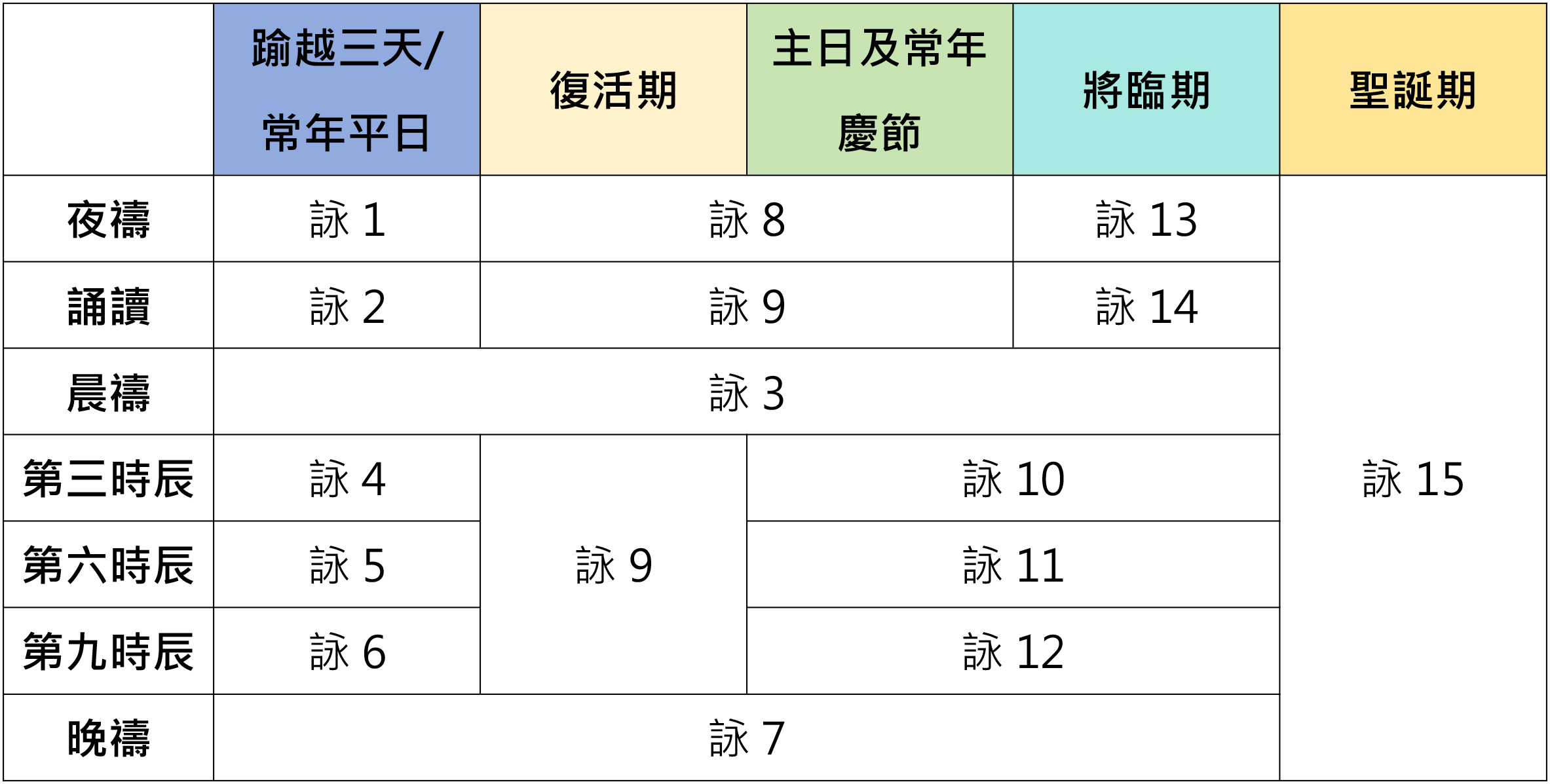 ![]() 《苦難聖詠》1-15首:用上表按時期選擇 |