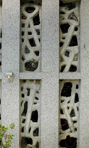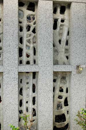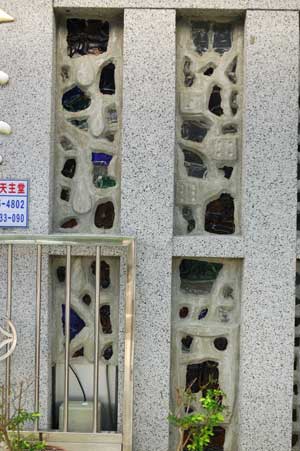 ![]() 內貌:用的是廢物理用,如舊玻璃瓶、酒瓶等 下:外貌:水泥的外框:苦難刑具 |