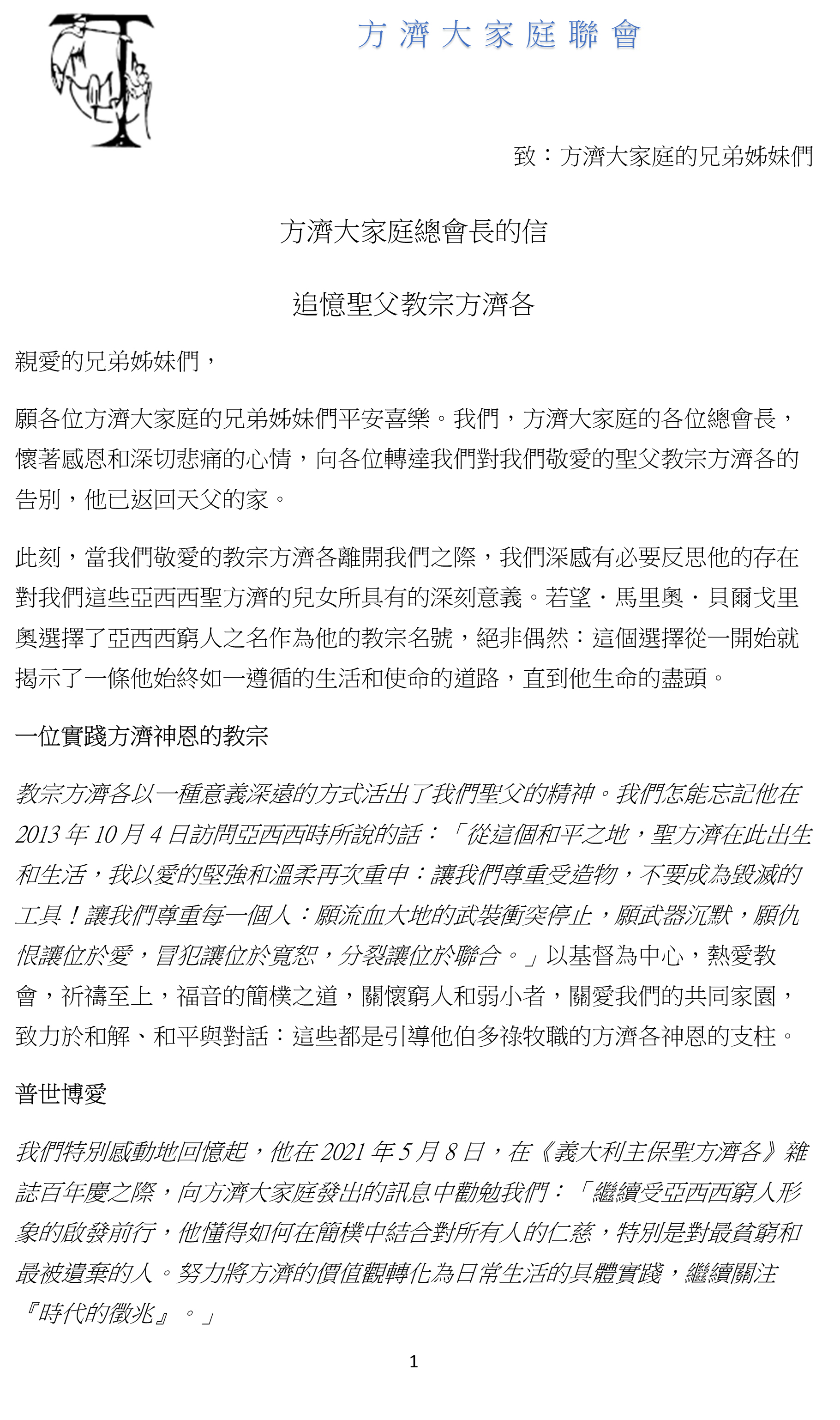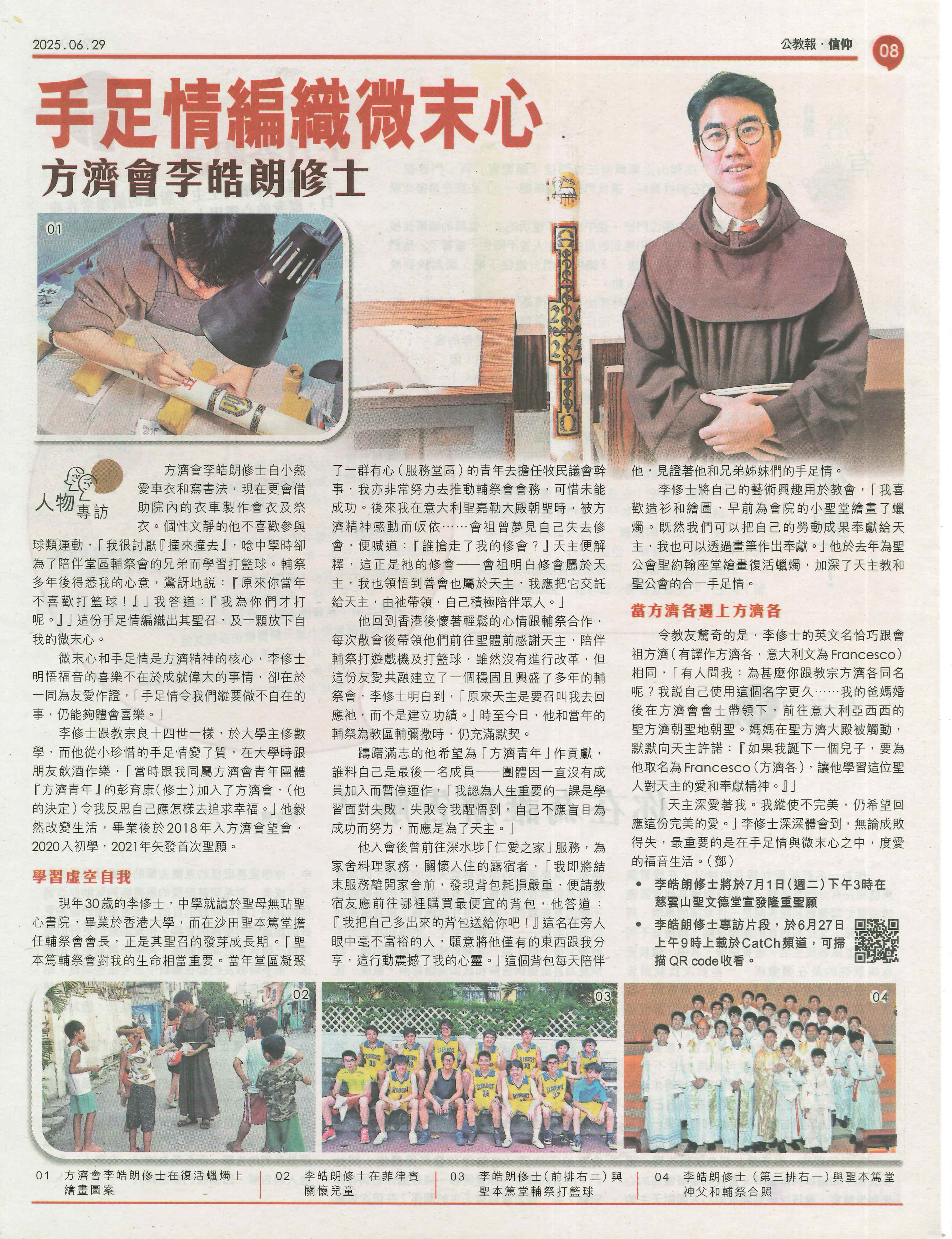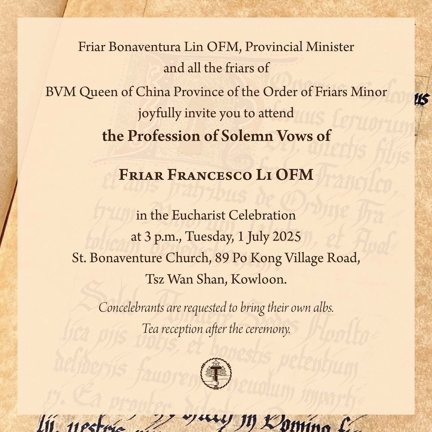 小兄弟會【方濟會】盧天和神父兄弟【Reverend Friar Efren Lim Ojeda OFM】,於 2025年11月22日中午,在九龍伊利莎白醫院,因病由死亡姊妹接返天父懷抱。