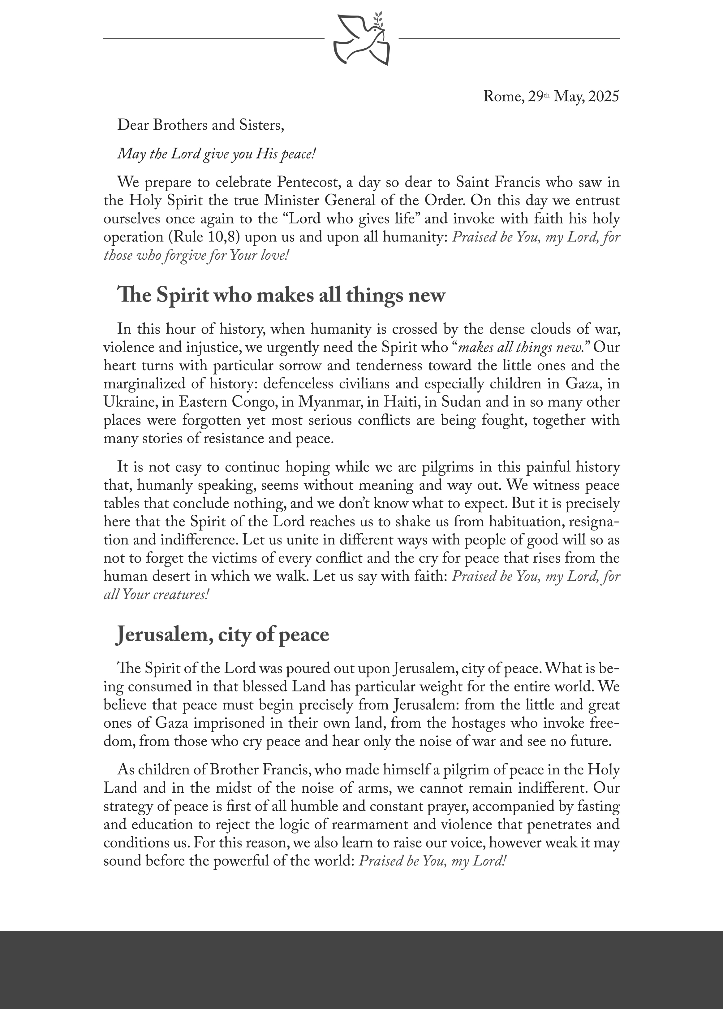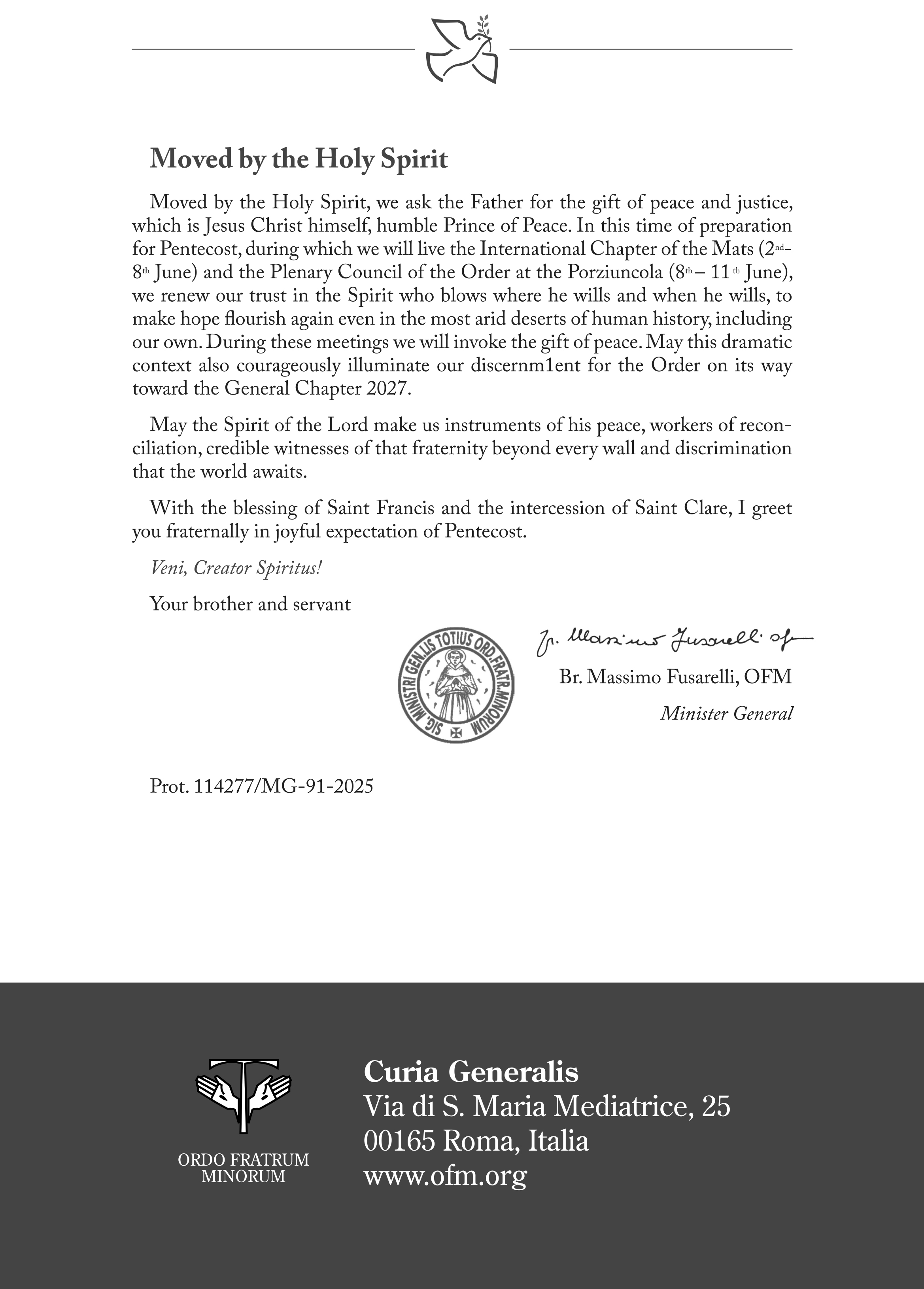 After 25 years of priestly service and more than 33 years of faithful consecrated life according to the spirit of St Francis, our brother Efren, a pilgrim of hope, completed his earthly journey of 66 years and now sings the Canticle of the Creatures in heaven together with all the Seraphic saints, continuing his musical praises.